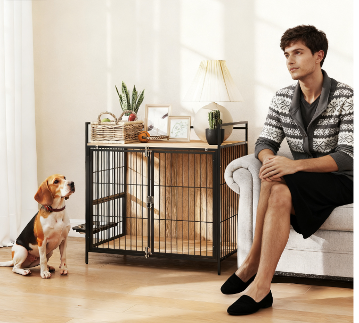 - - Dual-Function Design: This stylish furniture dog crate serves as both a comfortable indoor pet crate and a sleek side table, seamlessly blending with your home decor